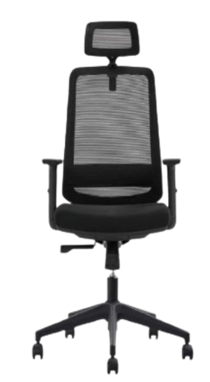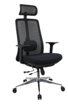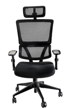 Respaldo de malla, asiento de tela, brazos ajustables, con apoyacabeza