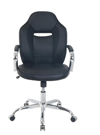 Respaldo con apoyacabeza y asiento de cuero (PU), brazos ajustables, base cromada