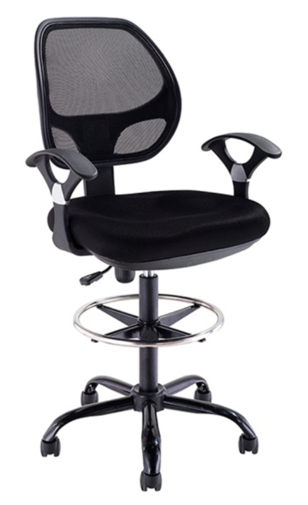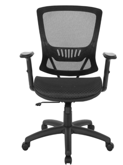 Respaldo de malla, transpirable con ajuste y soporte lumbar, brazos fijos