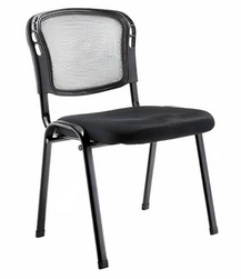 Asiento de tela, respaldo de malla transpirable con ajuste lumbar, base trineo de metal cromado con brazos fijos