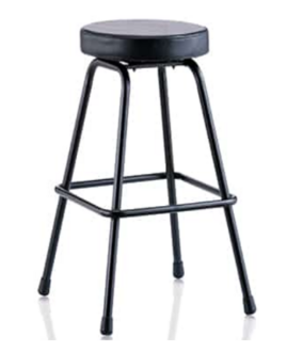 Asiento de vinil girable, regulador de altura, descansa pies cromados ajustables, base de metal