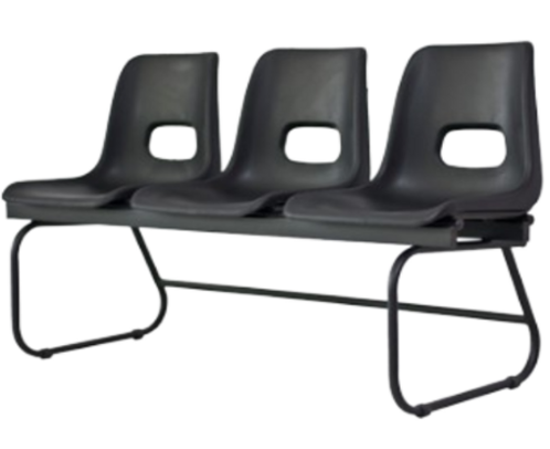 Bateria de conchas plásticas de 3, 4 y 5 sillas, estructura de metal