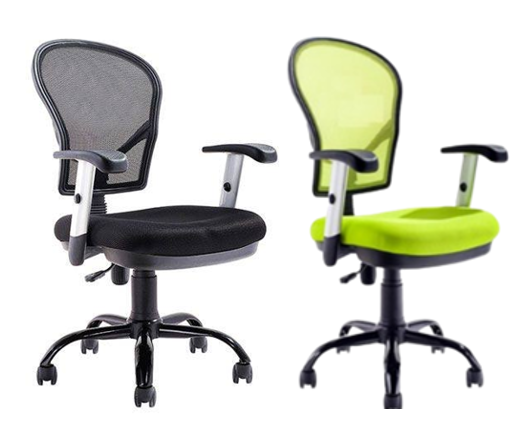 Respaldo de malla, asiento de tela importada, brazos fijos