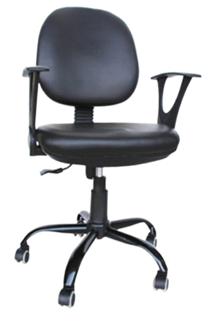 Asiento y respaldo de cuero, brazos fijos, altura ajustable de la silla, base negra