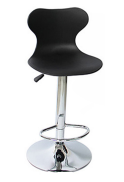 Base redonda y piecero con acabado cromado, asiento giratorio 360º con altura ajustable, acabado brillante, espaldar bajo, ABS y acero