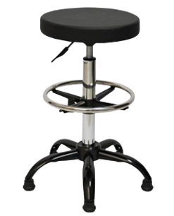 Asiento de vinil girable, regulador de altura, descansa pies cromados ajustables, base de metal