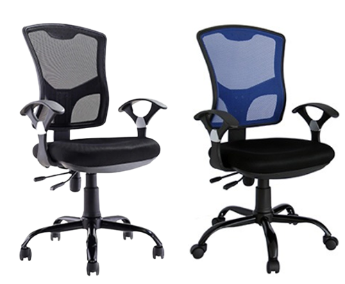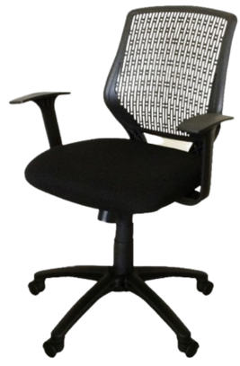 Respaldo de malla, asiento de tela importada, brazos fijos