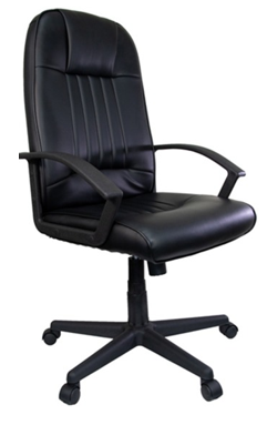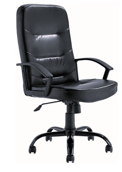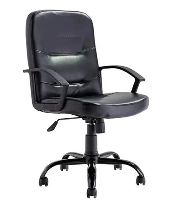 Asiento y respaldo de cuero, brazos fijos, regulador de altura, mecanismo sincronizado ajustable