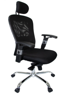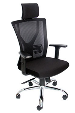 Respaldo y asiento de malla, base cromada, brazos ajustables, con apoyacabeza