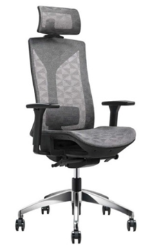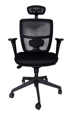 Respaldo de malla, asiento de tela, brazos ajustables, con apoyacabeza