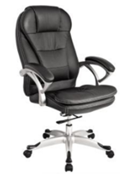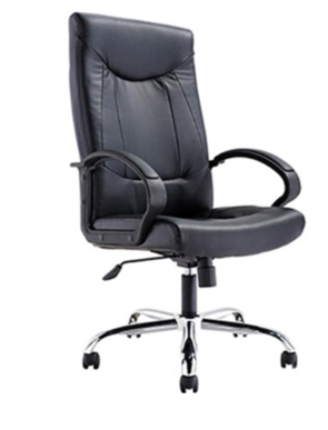 Respaldo con cabecera y asiento de cuero (PU), brazos fijos, ajuste de altura de la silla, base cromada