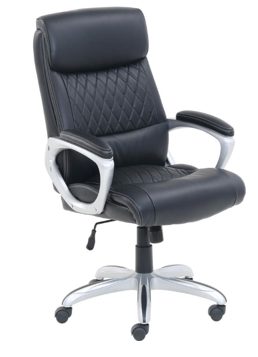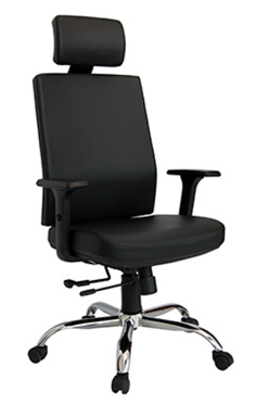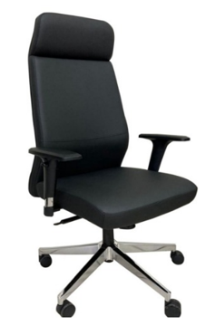 Respaldo con apoyacabeza y asiento de cuero (PU), brazos ajustables, base cromada