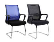 Asiento de tela, respaldo de malla transpirable con ajuste lumbar, base trineo de metal cromado con brazos fijos